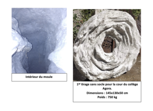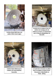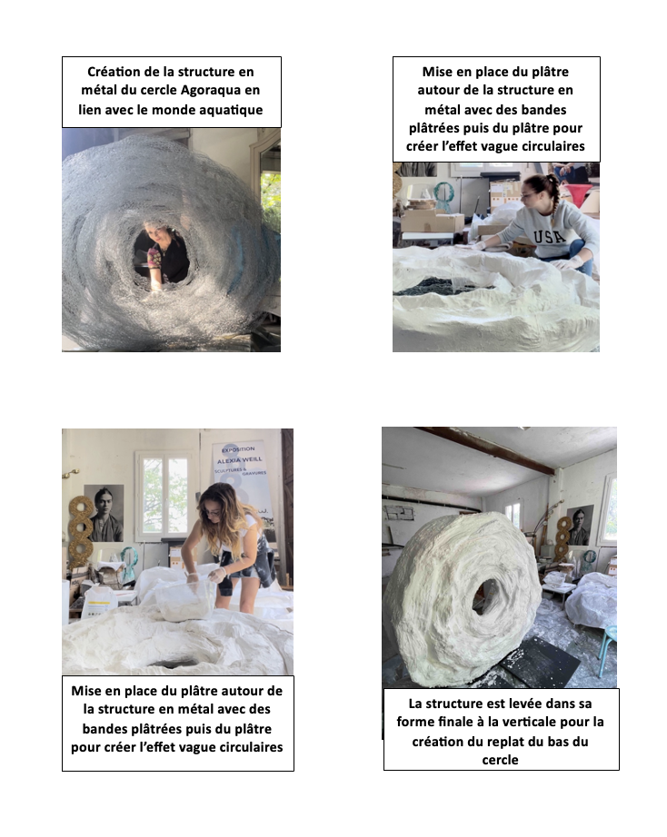 Le cercle en ciment marin écologique AQUAGORA est réalisé d’après maquette en plâtre grandeur nature par l’artiste Alexia Weill.