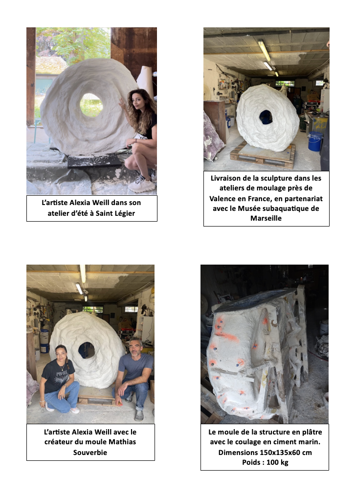 Le moulage et le tirage de l’oeuvre ont été réalisés en partenariat avec le Musée subaquatique de Marseille, la réalisation a été supervisée par l’artiste Alexia Weill.
