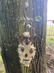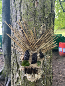 Ces déchets proviennent d’une cueillette d’1h30 aux alentours de l’école. Le tronc uniquement, a été réalisé avec le contenu de la poubelle PET de l’entrée du Tombay.
