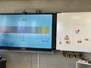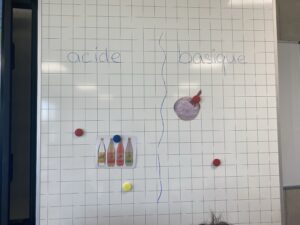Elles ont alors demandé aux élèves de se mettre par groupe et leur ont donné 2 images. Les apprentis chimistes devaient déterminer si c’était quelque chose d’acide ou basique.