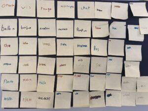 On a d’abord réfléchi à des choses qu’on avait apprises durant ces 100 jours d’école. Puis on s’est mis à écrire des mots que l’on connaissait.