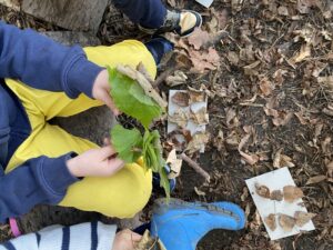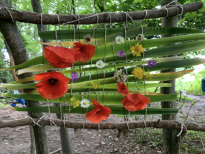 Fabriquer des peintures avec des éléments de la nature, créer des oeuvres d’art, peindre en frottant des feuilles, des fleurs, en utilisant le charbon du bois brûlé.