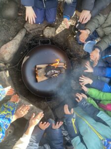 Premier feu à la forêt ! On s’est bien réchauffés les mains !