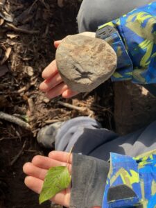 101 jours d’école ! Un nouvel élément de la forêt vient s’ajouter ! La pierre sera notre représentation d’une centaine !