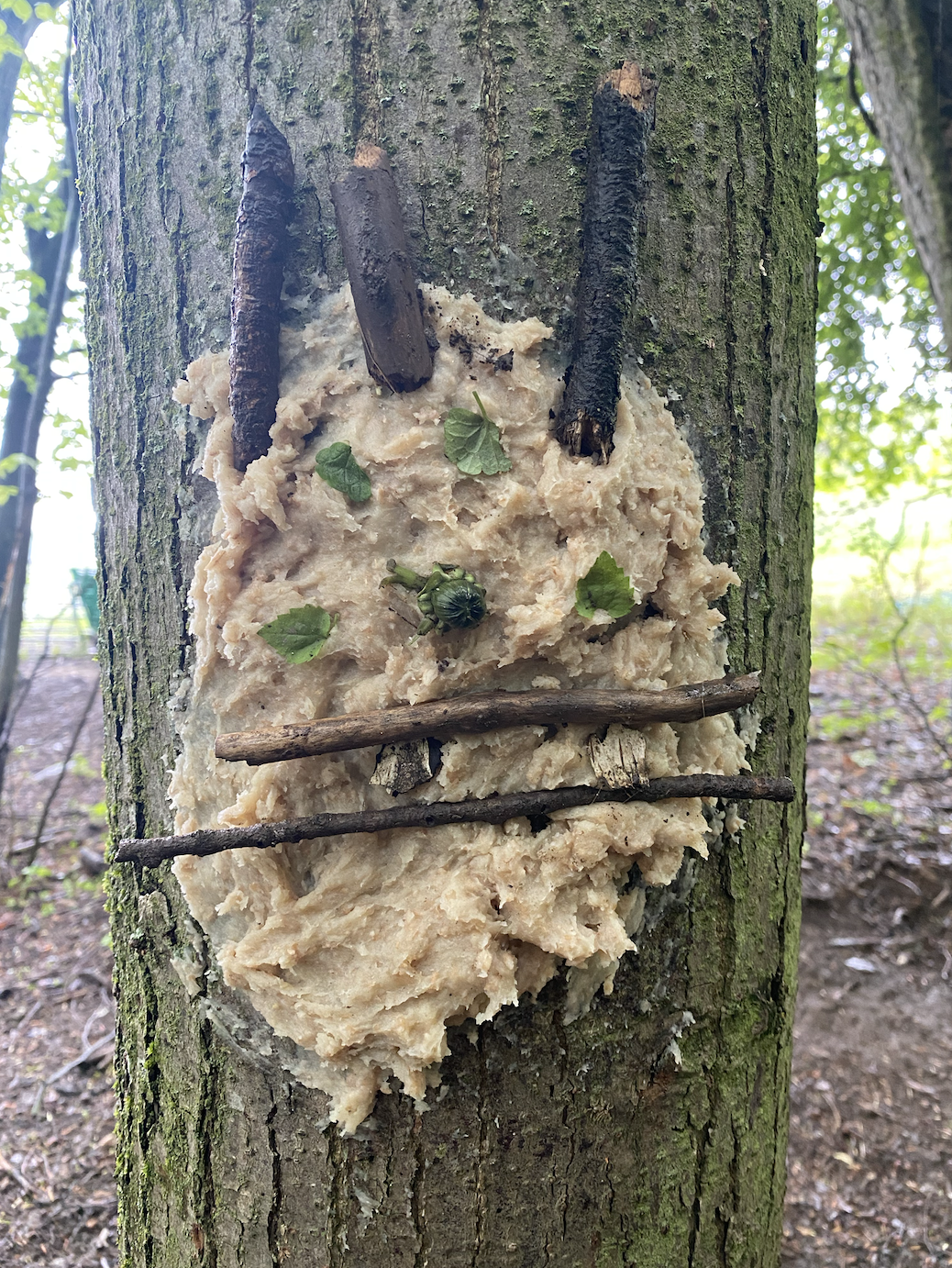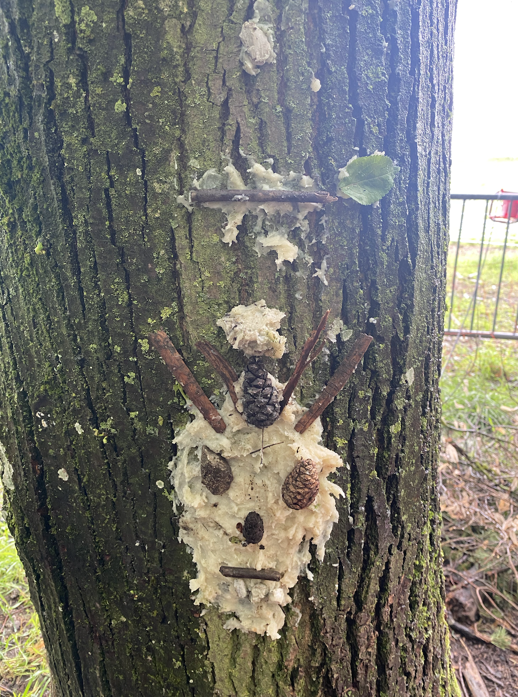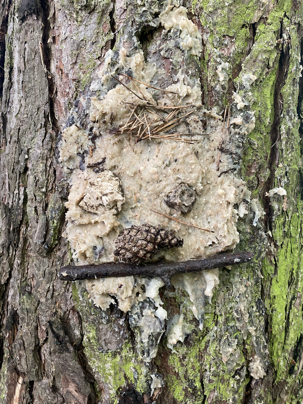 Ce matin, nous avons fabriqué ces jolies mangeoires que nous avons disposé un peu partout dans la forêt ! Il a fallu faire fondre la graisse de coco sur le feu avant d’y introduire les graines et mélanger le tout !