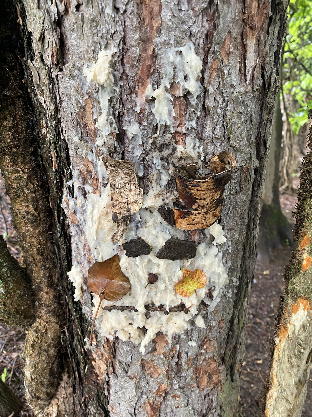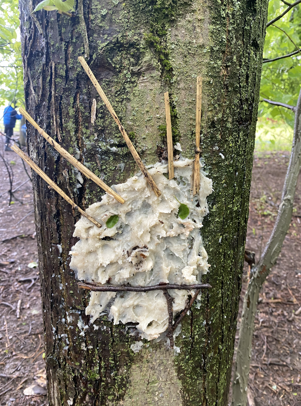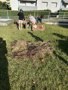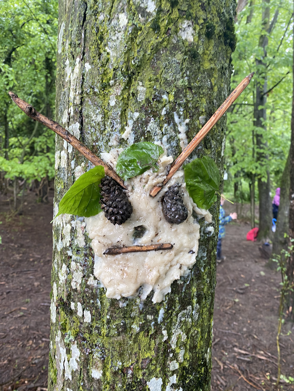 Ce matin, nous avons fabriqué ces jolies mangeoires que nous avons disposé un peu partout dans la forêt ! Il a fallu faire fondre la graisse de coco sur le feu avant d’y introduire les graines et mélanger le tout !