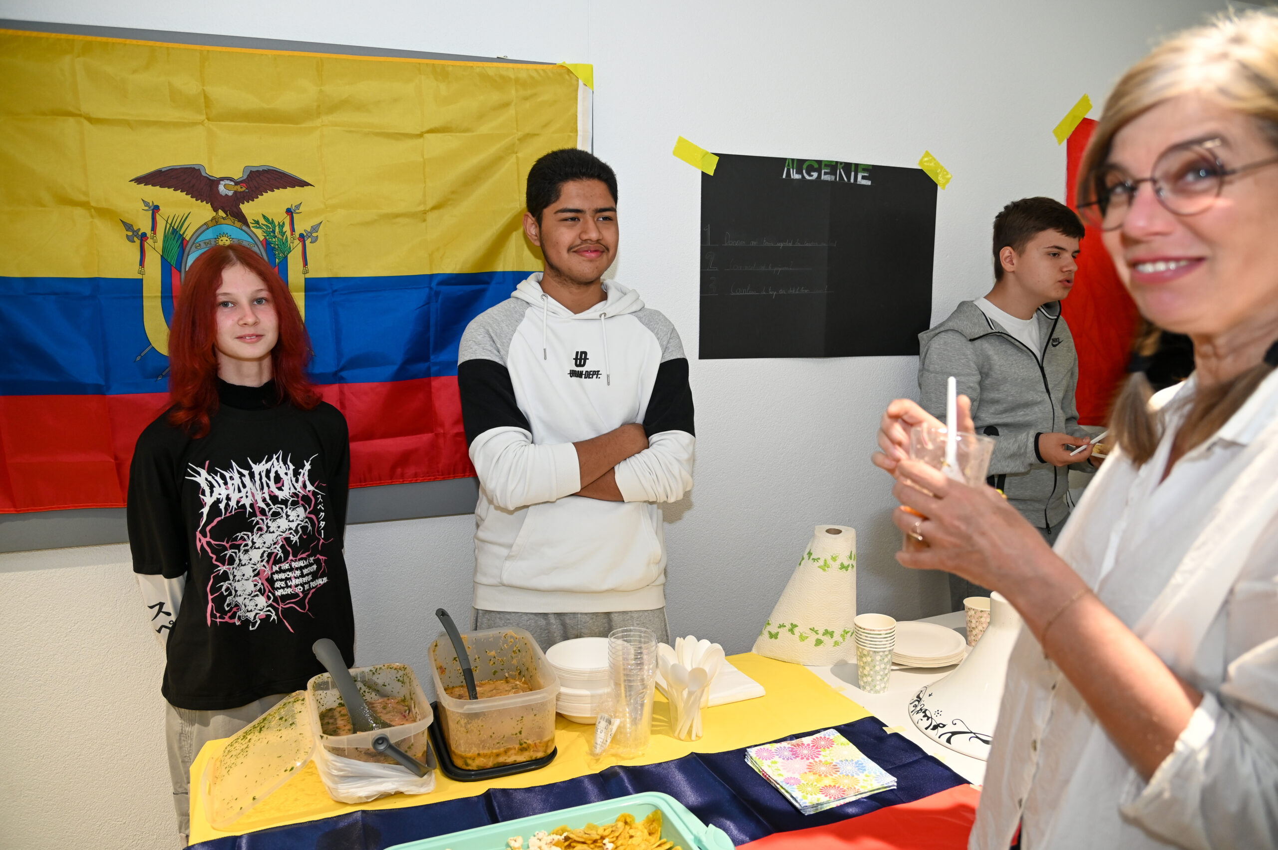 Célébration, partage, et délices culinaires ont été les maîtres mots de la fête culturelle organisée par nos délégués des classes 9-11S au sein de notre école. Cet événement a été bien plus qu’une simple occasion de divertissement ; dès l’instant où l’on franchissait les murs du collège de Dalaz ornés de drapeaux multicolores, on était transporté dans un monde de saveurs venues des quatre coins du globe. Des plats traditionnels préparés avec amour par les élèves et leurs enseignants ont réuni les papilles dans une symphonie de goûts et d’arômes. Les précieux moments passés à discuter, à rire et à découvrir ensemble ont créé des souvenirs impérissables, nourrissant notre esprit tout autant que nos estomacs.