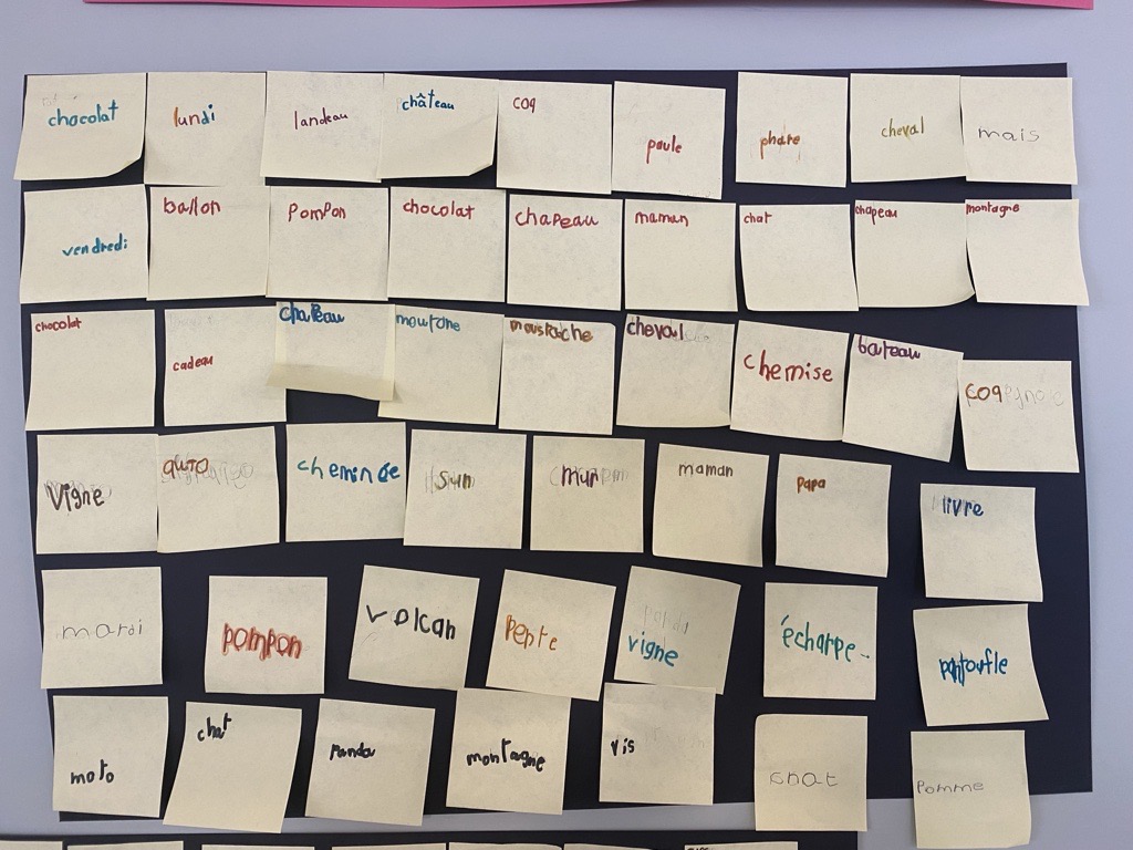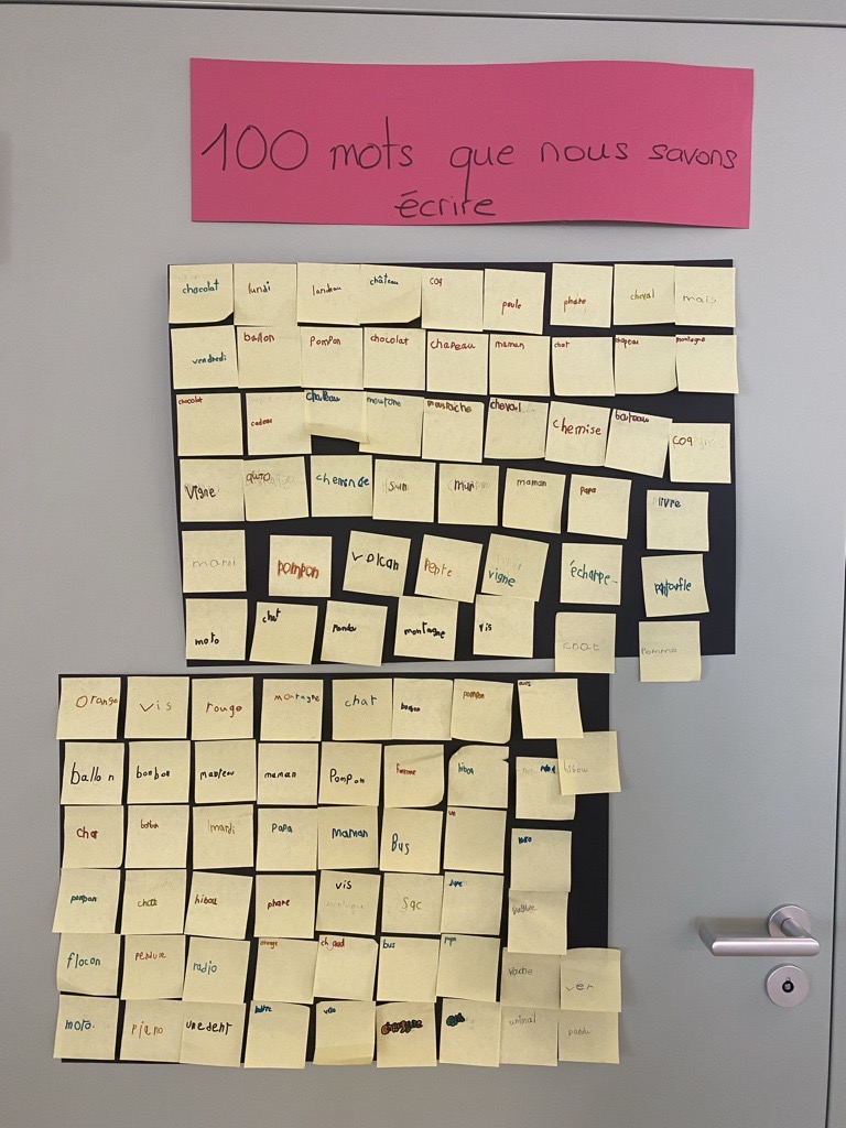 On a d’abord réfléchi à des choses qu’on avait apprises durant ces 100 jours d’école. Puis on s’est mis à écrire des mots que l’on connaissait.
