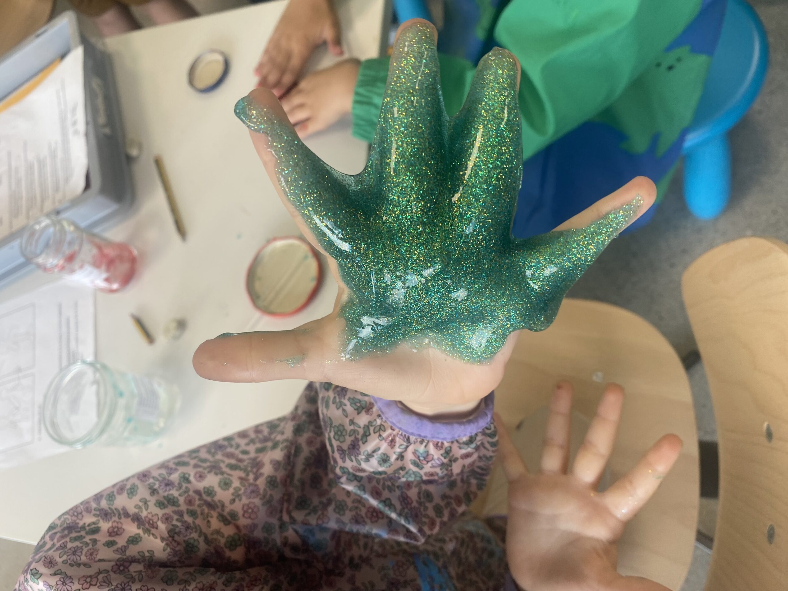 Finalement, les deux étudiantes ont réalisé leur dernière expérience: la fabrication de slime! Les élèves étaient vraiment excités car ils ont pu choisir leur couleur et ajouter un mélange de 2 sortes de paillettes différentes!