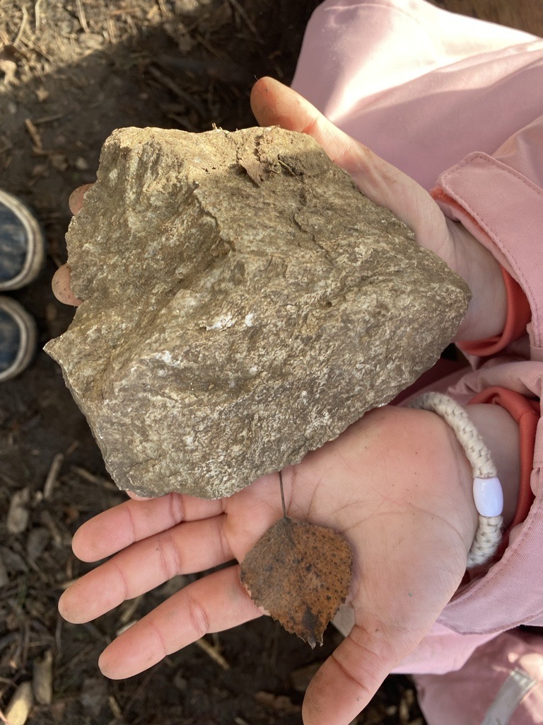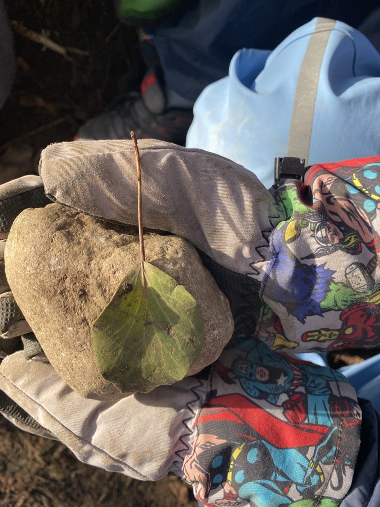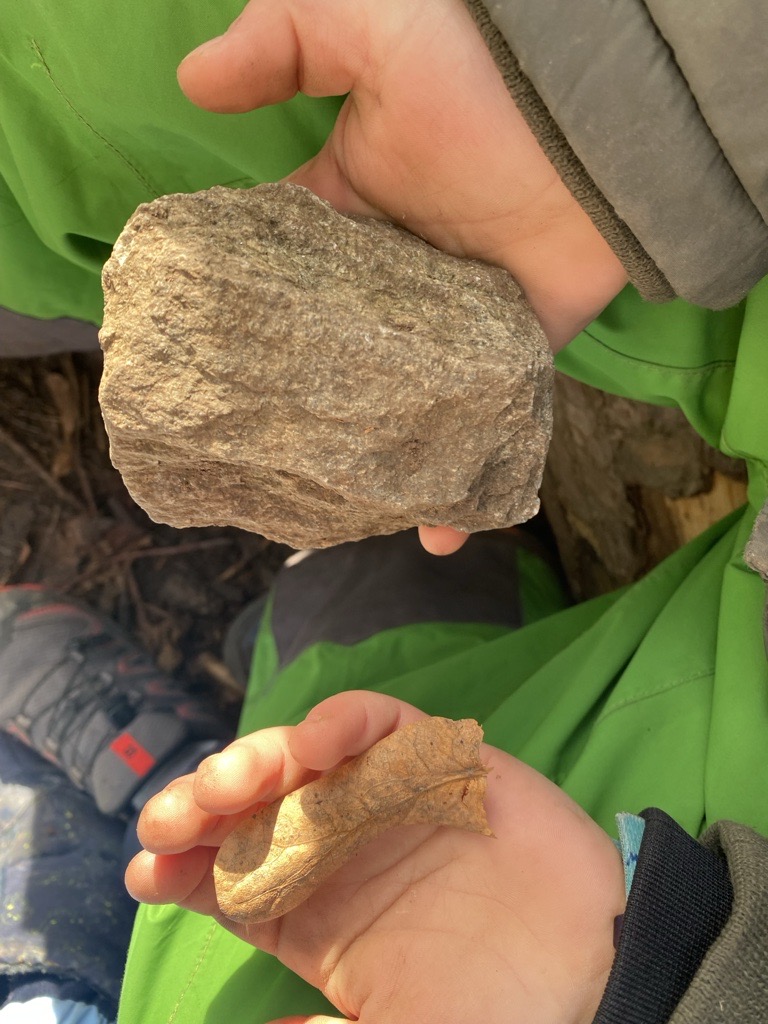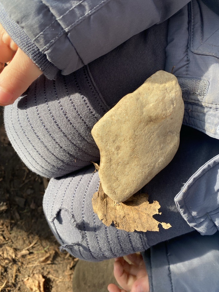 101 jours d’école ! Un nouvel élément de la forêt vient s’ajouter ! La pierre sera notre représentation d’une centaine !