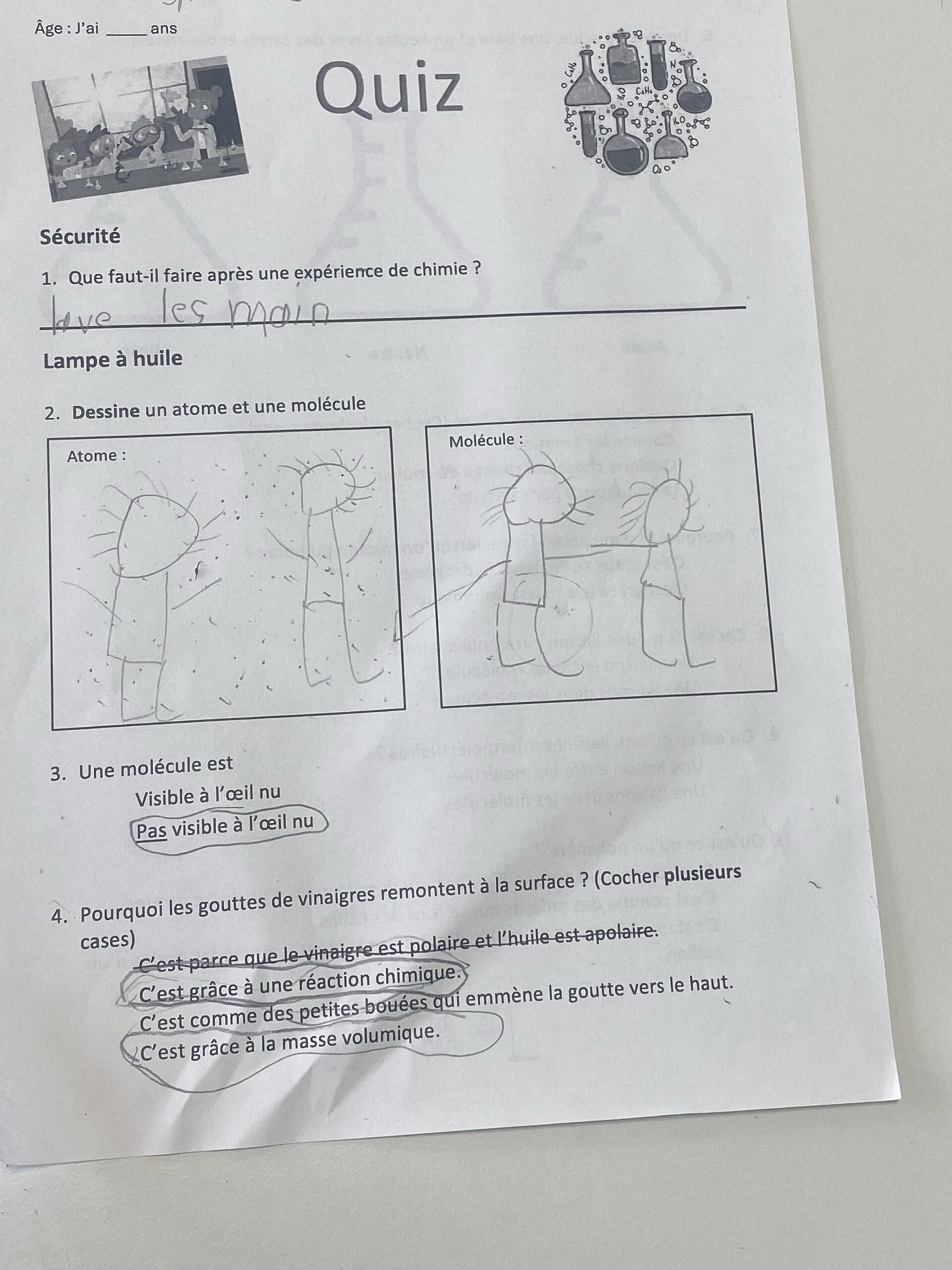 Au termes de ces différentes expériences, les élèves devaient répondre à des questions afin de vérifier leur compréhension des concepts expliqués !
